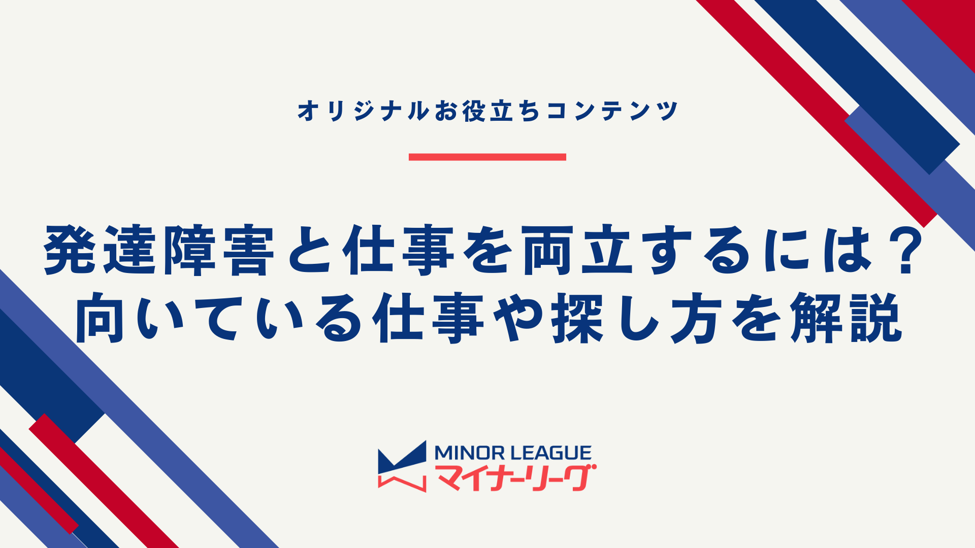 「マイナーリーグ」は、発達障害・精神障害の方専門の求人サイトです。無料登録で、あなたに合う求人や配慮のある企業をご紹介します。