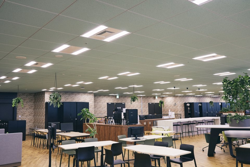 社内は明るく開放的な環境です。オフィス各階にはフリースペースがあり、打合せや面談、仕事の合間の休憩に使えます。